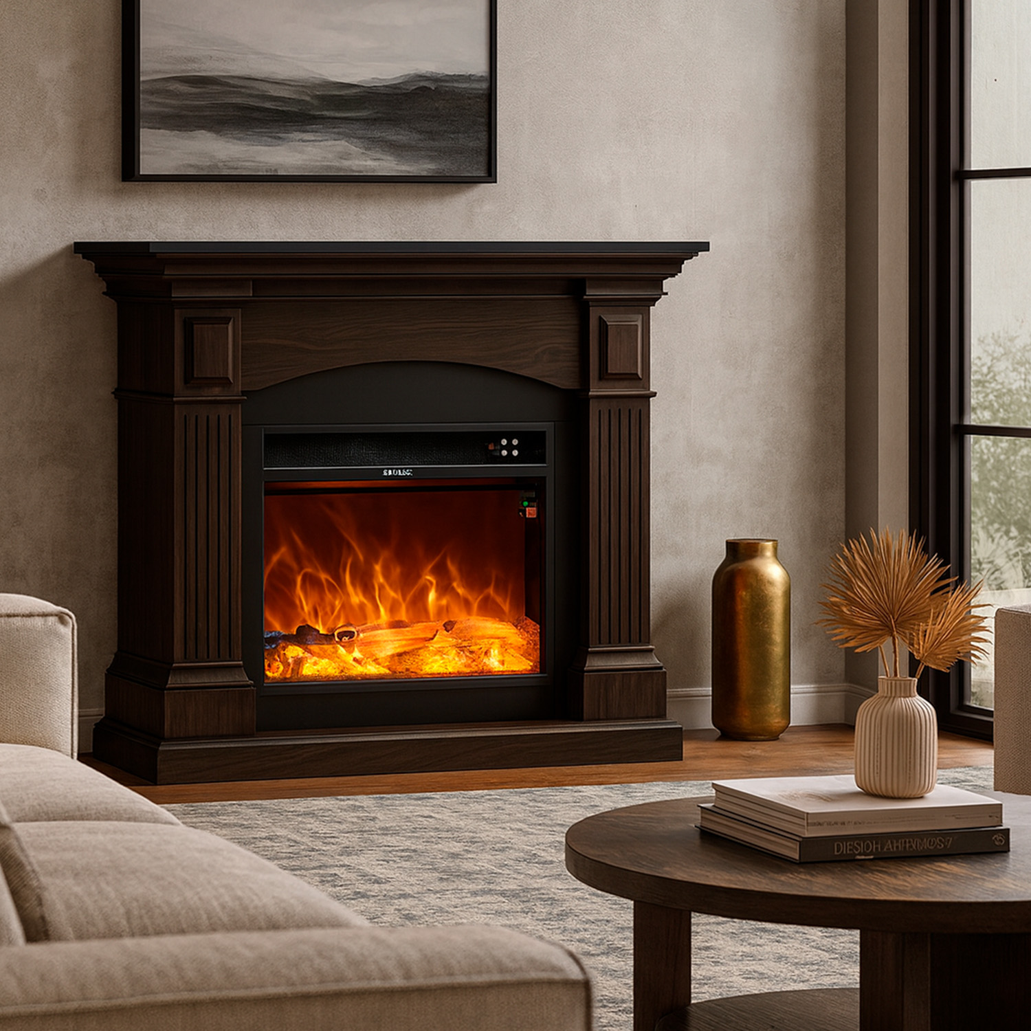 Sined’s electric fireplaces with mantels are designed to provide efficient heating, helping you warm your space while reducing energy costs. Equipped with adjustable heat settings, these fireplaces allow you to control the temperature, providing supplemental heat to rooms of various sizes. The built-in thermostats and timers let you set your desired temperature, ensuring that the room stays comfortable without wasting energy.