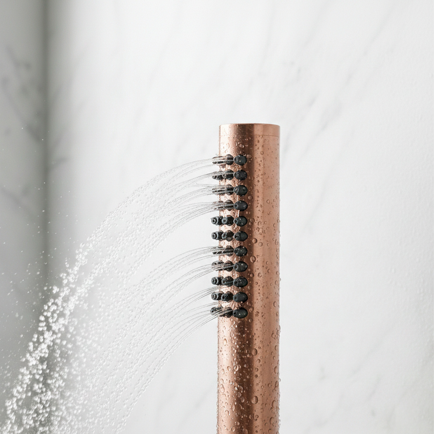 Elevate your shower experience with the SINED Levante rose gold hand shower, crafted with a luxurious PVD finish that adds a touch of sophistication to any bathroom. This handheld showerhead is designed with versatility in mind, featuring a universal connection that fits seamlessly with all indoor and outdoor showers.