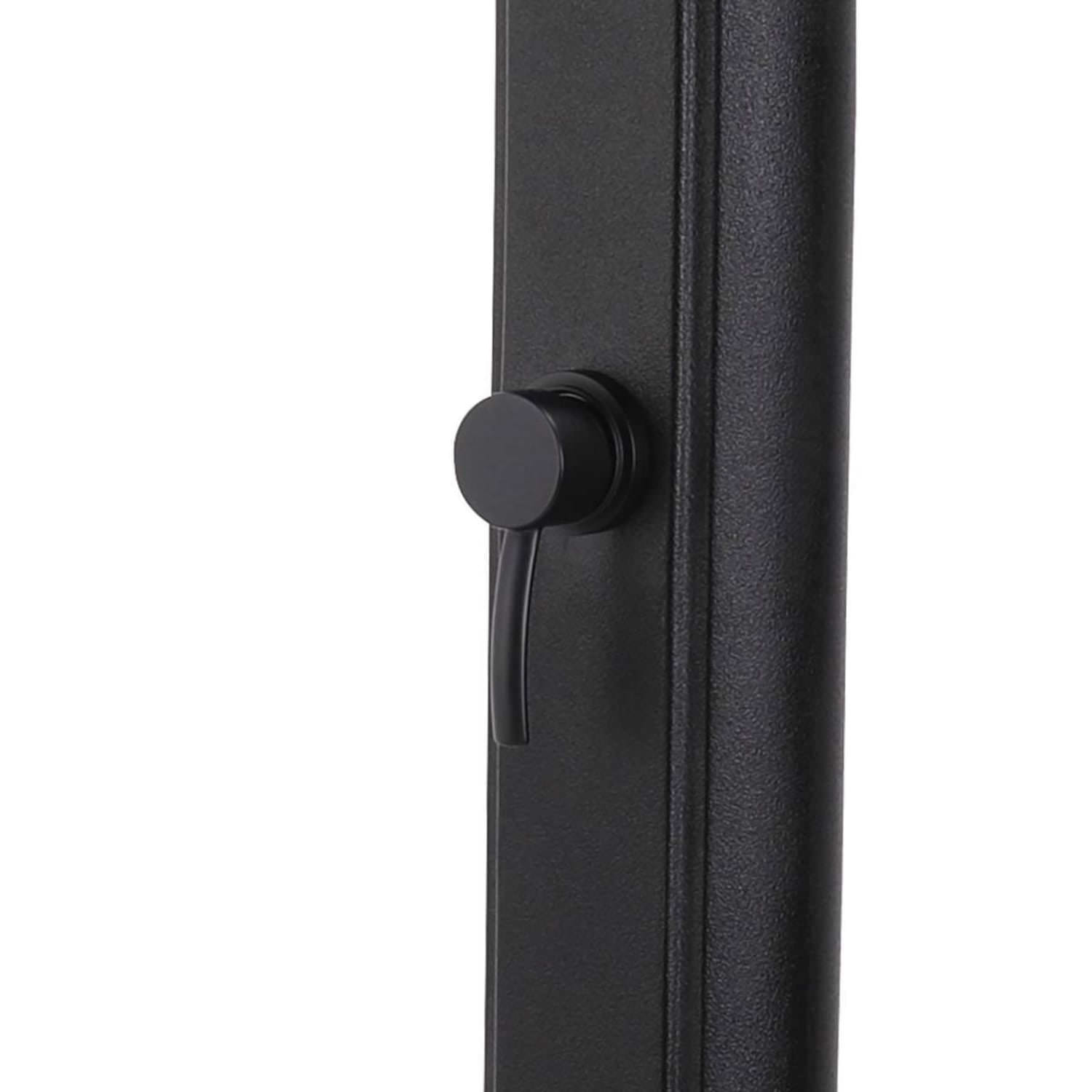 SINED Black Solar Shower For Garden With Round Shower Head Diameter 15.24 Cm Tank 25 Liters Foot Wash Faucet Height 226 Cm Shower With Curved Hd Polyethylene Structure With Black Metal Accessories. Limestone Filter And Cover For The Shower.